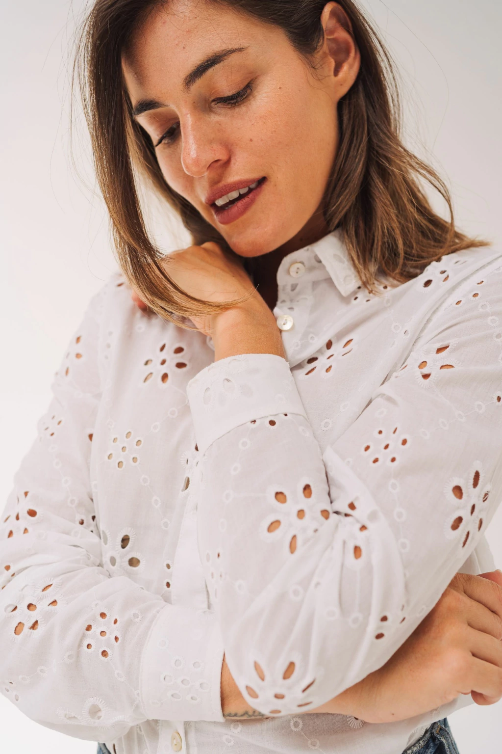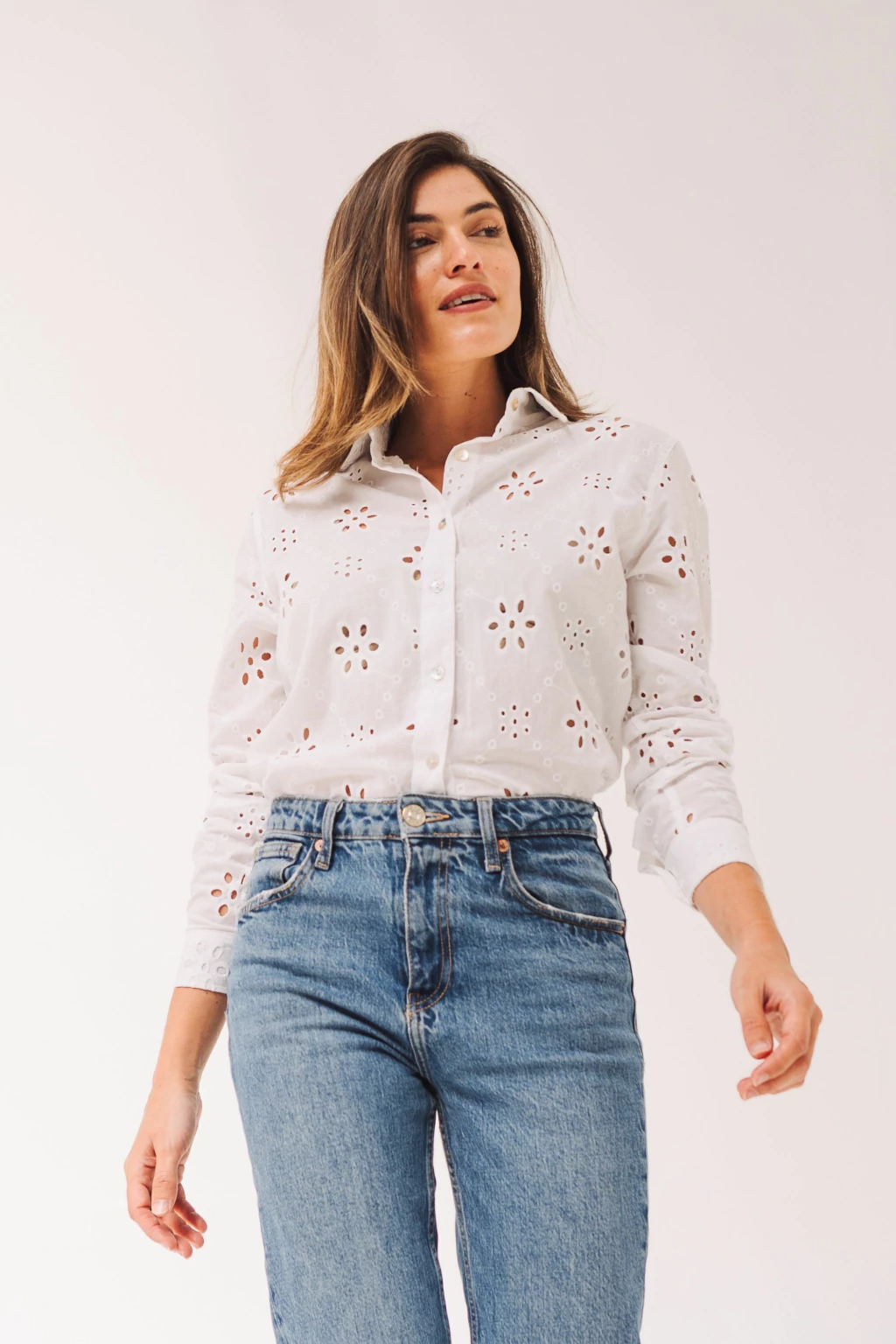 La Camisa Lucía está confeccionada en broderie 100% algodón, una combinación perfecta de lo clásico y romántico con un aire moderno. Su diseño la convierte en la camisa más romántica de la colección, manteniendo el ADN de LUAM con prendas atemporales y versátiles.